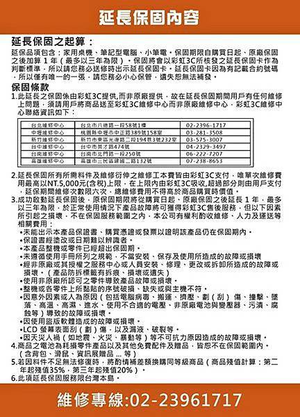 胖哥這邊就先來分享和說明一下彩虹3C目前的延保1年的方案